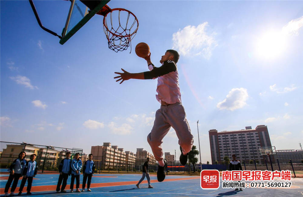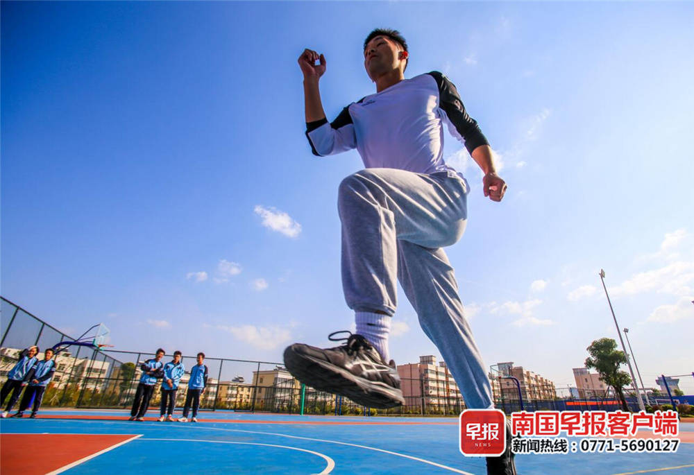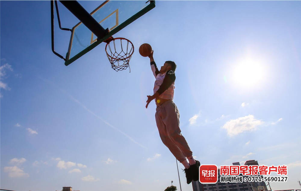 童昱昊并没有往田径运动员方向发展,因为他一直梦想成为一名职业篮球运动员,打CBA职业联赛。今年大学毕业后,经过层层选拔,他成为南宁市银海三美学校的体育老师。球场上,时常可以看到他腾空扣篮的身影。