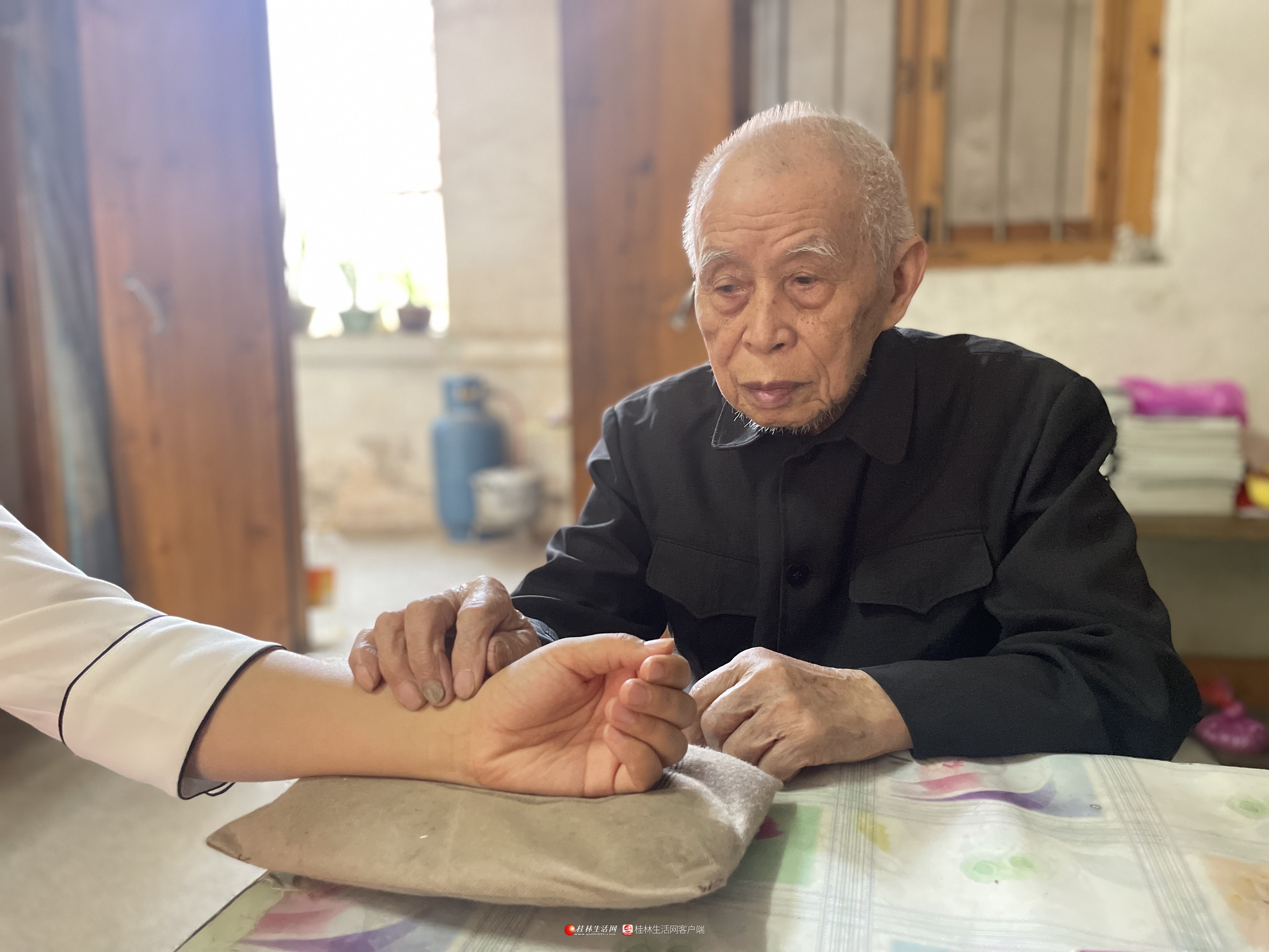韦现乾仍坚持把脉问诊,骆文涛摄