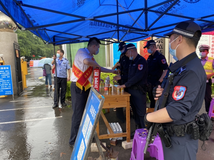 在做好志愿服务的同时,志愿者们还积极向在场维持秩序、做好安全消防工作的公安民警、交警、消防员等送去慰问品,感谢他们为高考顺利进行作出的贡献。