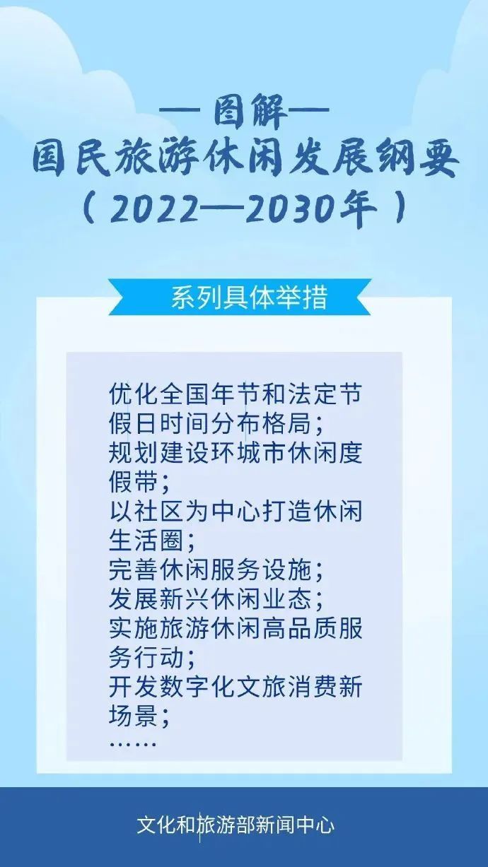 据介绍,《国民旅游休闲发展纲要(2022—2030年)》的印发,将加快推进国民旅游休闲高质量发展,更好满足人民群众的美好生活需要。