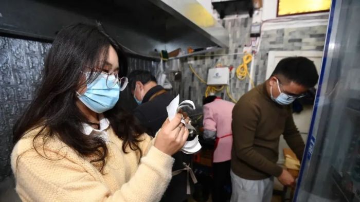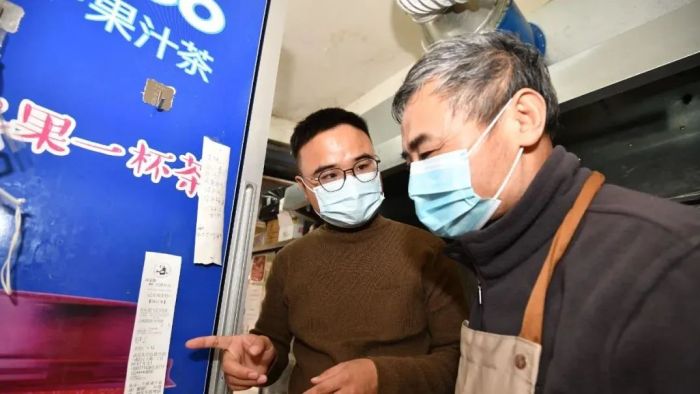 杨德坤向父亲杨仁强讲解如何看外卖打印单,并且合理提高出餐速度。