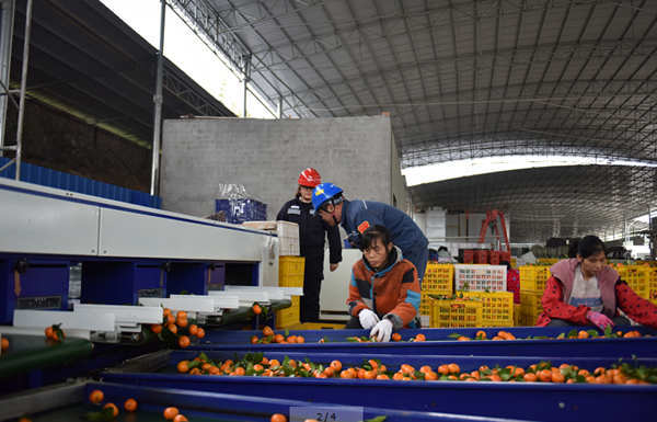 随着桔子产量的提升,桔子产业也衍生出了选果、洗果、冷藏等多个附属产业,为了激发乡村振兴的内生动力,盘活土地资源、增加农民收入,大圩镇涧沙村委干上村由村支书带头创建了扶贫车间,带动周边留守妇女、脱困户一起通过自己的努力改变生活,利用自动化设备进行选果洗果,再人工进行封装运输,将砂糖桔销往全国各地。大圩供电所党员服务队来到车间,详细的了解生产设备的用电情况,并对用电设备开展用电检查,消除用电安全隐患。大圩供电所党支部书记向车间负责人介绍用电政策,咨询用电难处并及时处理问题,确保产业车间在用电高峰期能够正常用电。