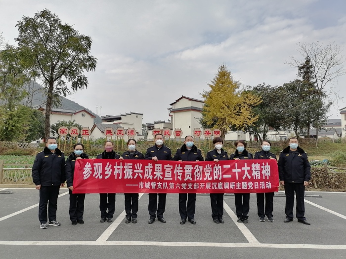12月16日上午,市城管支队第六党支部组织全体党员和入党积极分子来到灵川县潭下镇山口村,参观乡村振兴建设成果。广大党员同村党支部党员代表交流思想,畅谈党的富民政策,领悟中国共产党执政为民、振兴乡村的初心使命,从而更加坚定跟党走、感党恩的理想信念,立志将城市管理事业与促进乡村振兴有机融合,自觉将学习宣传贯彻党的二十大精神体现在干事创业的具体实践工作之中。