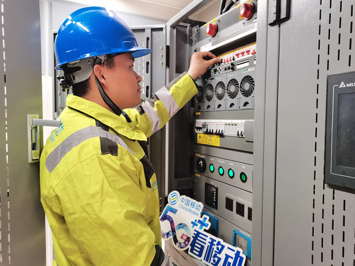 桂林移动网络保障人员正在进行小区5G网络参数调测 李静摄