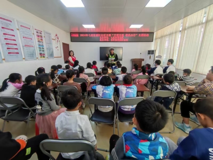 实践活动分两部分,首先,由七星交警大队的交警为学生进行主题为“文明交通 绿色出行”的宣传活动。“骑自行车必须年满12周岁,驾驶电动自行车必须年满16周岁,不得并行追逐或者曲折竞驶”,陈警官采用通俗易懂、生动实际的案例向同学们宣讲了交通安全法律法规和日常出行安全注意事项等交通安全常识,倡导同学们从小培养遵法、守法的良好习惯,不闯红灯、不乱穿马路、落实“—盔一带”守护行动,自觉抵制交通违法行为,增强安全出行意识和自我保护能力。鼓励同学们发挥“小手拉大手”的带动作用,不仅要做文明交通的实践者,还要努力当好宣传员,用自己学到的知识向家长、亲友们进行交通安全提醒,共同拒绝交通违法行为,做到安全文明出行。