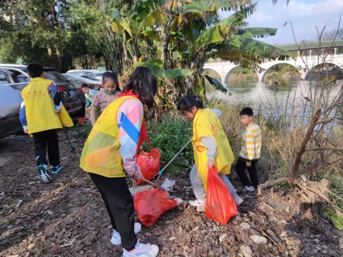 宣传结束后,学生们又拿起扫把、垃圾钳等清扫工具,来到了小东江边,三五成群分头行动,仔细认真地捡拾清扫着道路、花坛绿地和小东江沿岸的垃圾,以实际行动践行保护漓江、保护桂林山水的理念,共同维护母亲河的清澈干净和河岸的卫生整洁。