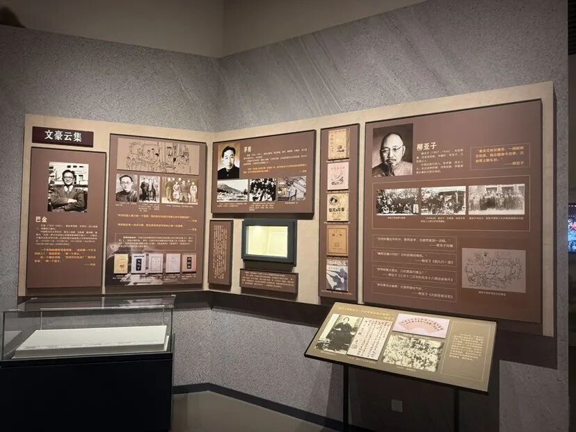 在“星火燎原”数字互动体验区,科技感与历史感巧妙融合:巨大的电子屏上,抗战文化名人的头像如星火般缓缓移动,观众只需轻轻点击感兴趣的头像,屏幕便会立刻展开详细介绍,让原本印在史料里的人物变得鲜活立体,观众仿佛能与先辈隔空对话,真切感受他们以笔为枪、以文化为盾的爱国情怀。