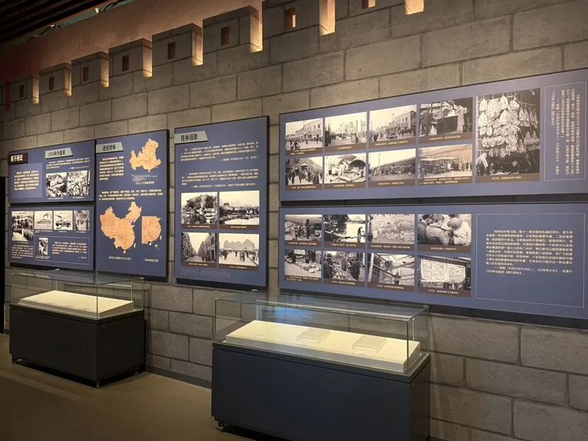 穿过序厅,便来到《文化堡垒中流砥柱》板块。这里聚焦中国共产党对桂林抗战文化运动的领导,详细讲述文化人士南渡桂林的时代背景与历程,以及中国共产党在思想引领、统战协调、组织统筹和生活保障等方面发挥的关键作用。在这里,你能看到桂林的诸多旧照片,从中找到20世纪40年代的火车站、街头景象,还能了解到抗战时期文化人士疏散进驻桂林的三条路线等。