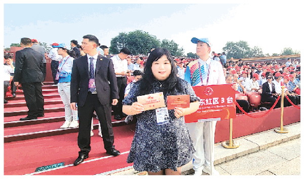 ◤王孟筠在北京天安门阅兵观礼现场。 (受访者供图)