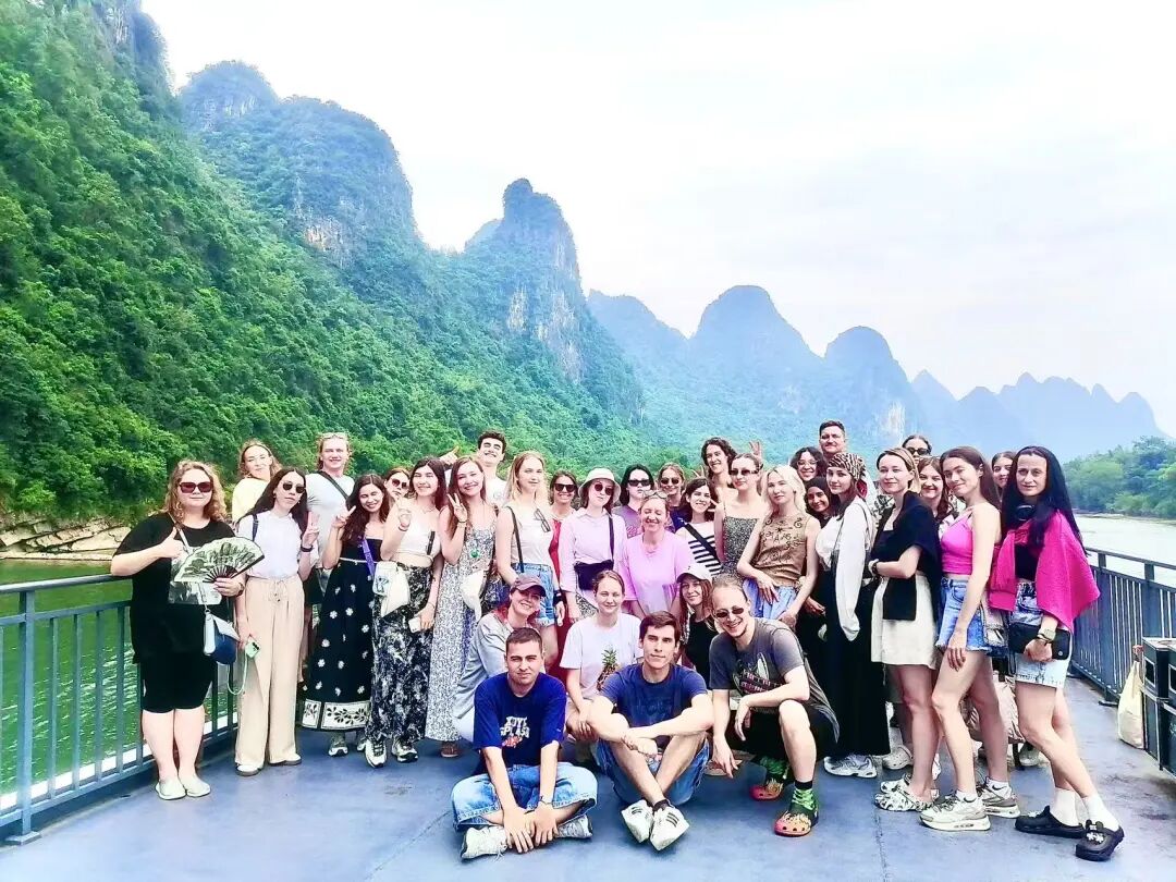 想带娃玩?有亲子主题游船,还能看民乐演奏、学茶艺;想逛吃打卡?磨盘山码头的 “漓” 想集市别错过,34家商户齐聚,吃美食、看漓江文化展两不误;怕攻略难查?小红书、抖音上的 “漓江推荐官” 早把购票、出行、研学知识点讲得明明白白。为了让更多外国人来玩,景区还跑了300多次国内外旅行社,量身优化入境游产品,难怪外国游客来得这么多!