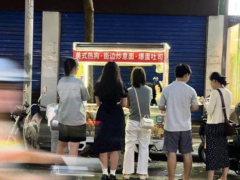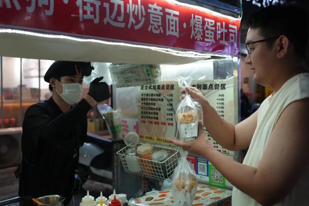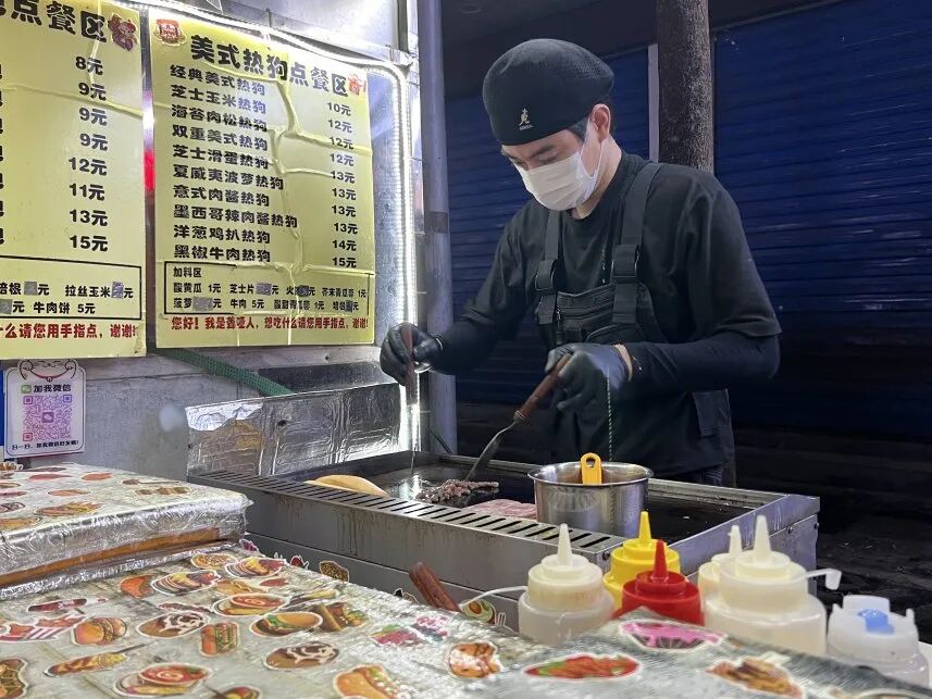 接着,杨健又张罗来一辆二手三轮车,把摊位支得更像样,并开始卖热狗、意面、爆蛋吐司。如今,每个品类下,杨健可以做出6到10种不同的口味供顾客选择。此后,杨健根据顾客的喜好,每隔一段时间就换一个摊位摆。只要不是大雨天气,他晚上7点左右出摊,一直忙到次日凌晨3点。