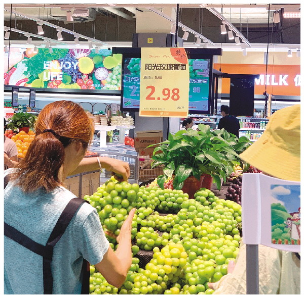 8月底,叠彩区一家大型超市销售的“阳光玫瑰”葡萄,特价仅售2.98元/斤。