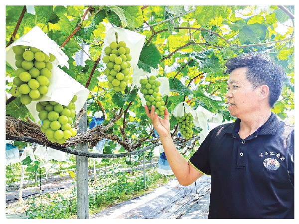 兴安县葡萄种植大户肖卷忠坚持种植高品质的“阳光玫瑰”。