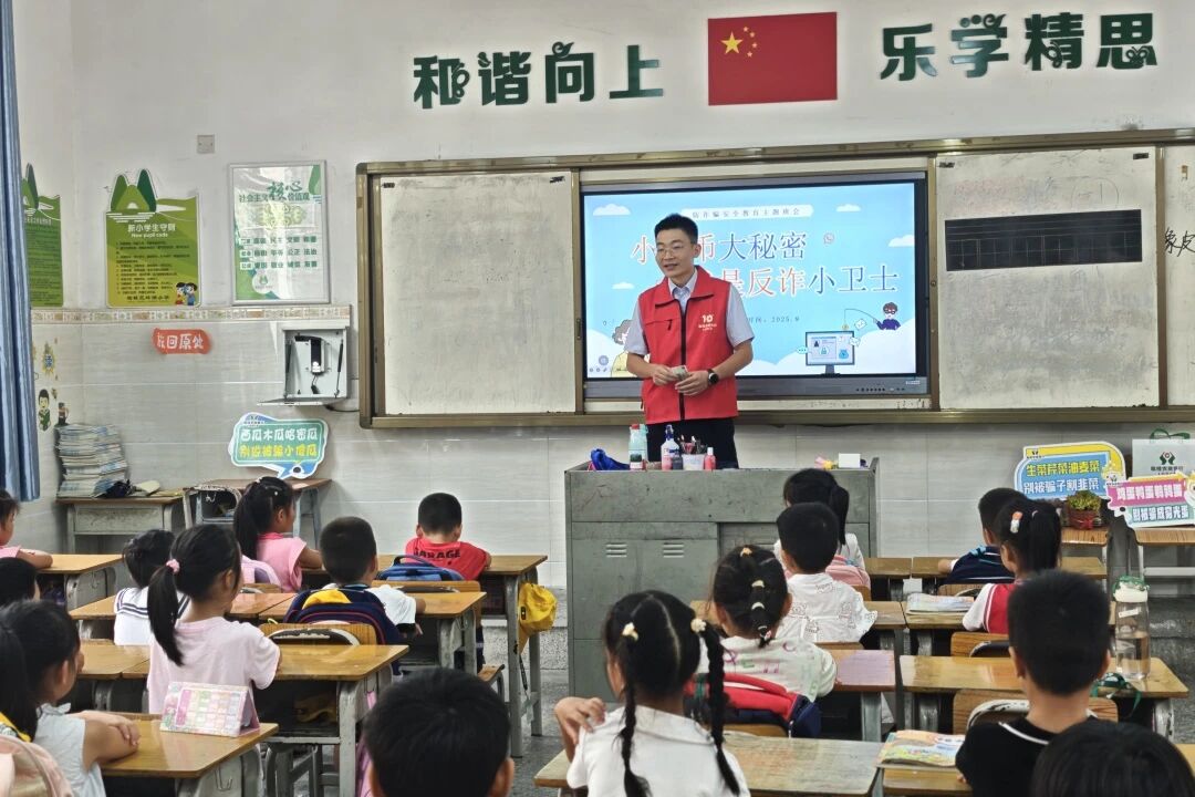 9月19日下午,临桂农商银行走进环湖小学,开展了以“反诈宣传进校园,筑牢防骗保护墙”为主题的金融教育活动。活动中,临桂农商银行工作人员通过PPT和视频,用生动的案例向同学们介绍了常见的电信网络诈骗手法,并重点讲解了遇到疑似诈骗时的“三不一要”原则: