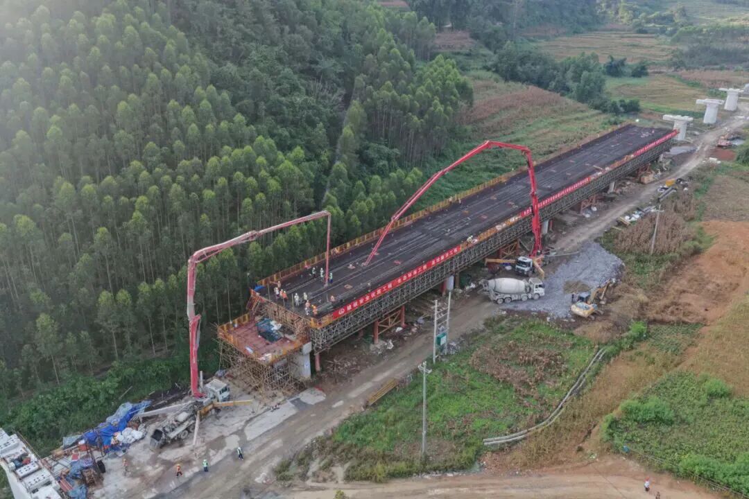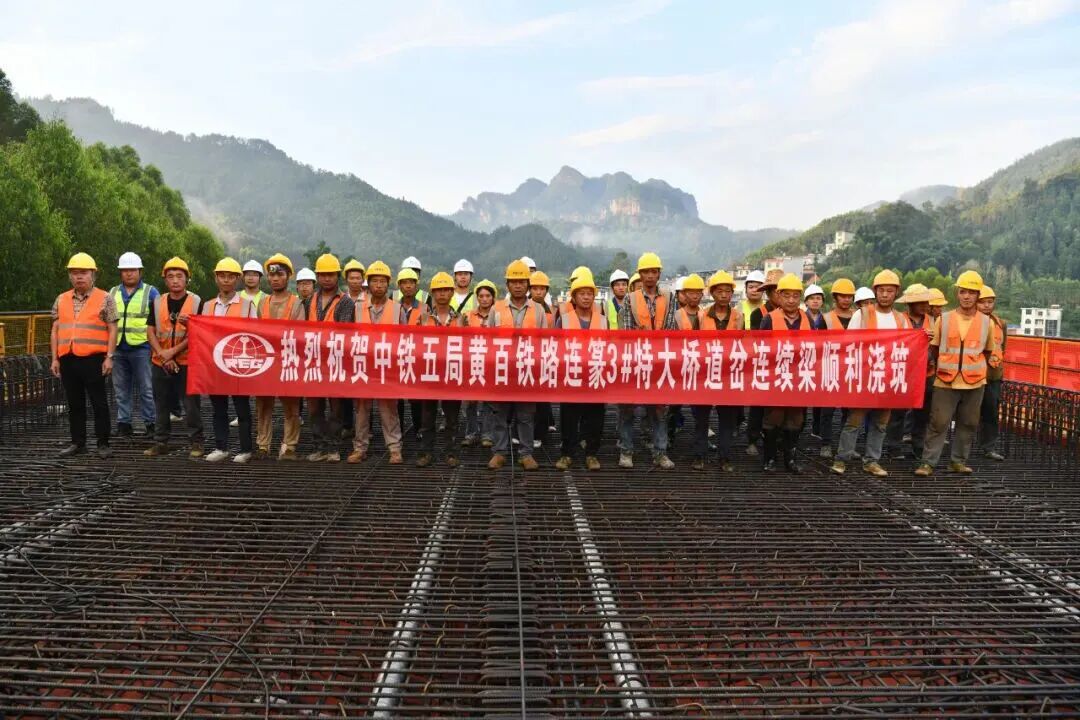 本次浇筑的道岔连续梁体约130米,横跨5个墩台,采用支架现浇法一次性完成1785立方混凝土的浇筑,是迄今为止黄百铁路广西段一次性浇筑长度最长、混凝土方量最大的连续梁。