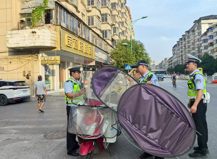 与辖区城管等职能部门建立常态化联合执法机制,定期组织开展共享电动车违停专项整治行动;分析研判辖区摩托车、电动自行车加装遮阳伞交通违法行为特点开展整治,对能够自行拆除遮阳伞的车主,采取警告教育处理,对拒不拆除的,一律责令拆除,发现一起,查处一起,全力清除非法加装遮阳伞引发的事故隐患。