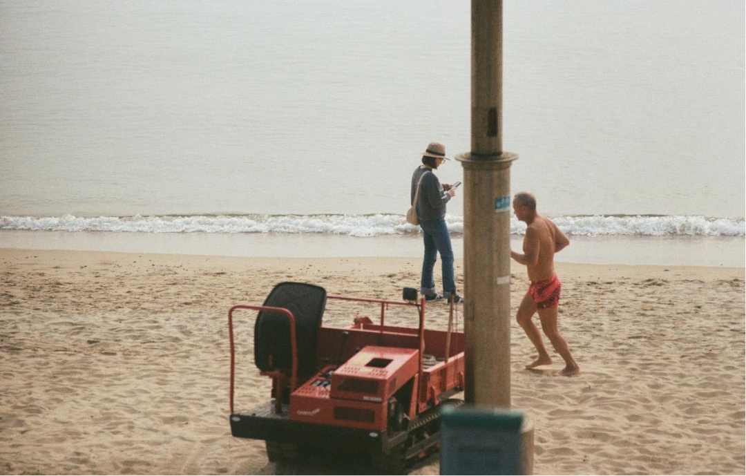 胡星的获奖作品《冬天与夏天》(Winter and Summer)拍摄于中国香港浅水湾沙滩。画面通过冬日中坚持锻炼的长者与沉浸于数字社交的青年群体的对比,深刻反映了工业化与数字化时代下两代人生活方式的变迁。作品以极具张力的视觉语言,引发对现代都市人文关系的思考。