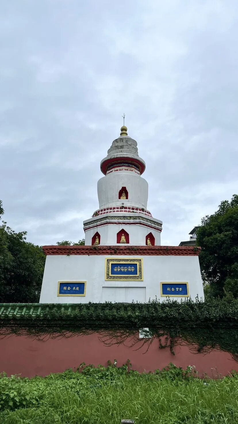 民主路舍利塔,坐落于象山区民主路万寿巷开元寺遗址内,承载着厚重的历史。原塔始建于唐显庆二年(657年),如今呈现在世人眼前的舍利塔,乃是明洪武十八年(1385年)重建的喇嘛式砖塔。塔基为方形四门相通的基座,南门刻“舍利宝塔”,西门刻“南无阿弥陀佛”,四面门额分列八大金刚名号。基座上设八角形须弥座,八面各置圭形佛龛供奉坐佛。塔身呈覆钵形,四面设壶门,南门内藏舍利函。塔刹由伞盖、五重相轮及宝珠形铜顶构成,属明代过街式塔典型形制。现存塔体为明代遗构,塔内共藏佛舍利20余颗。1972年整修时,于内壁发现墨书《金刚经》全文。