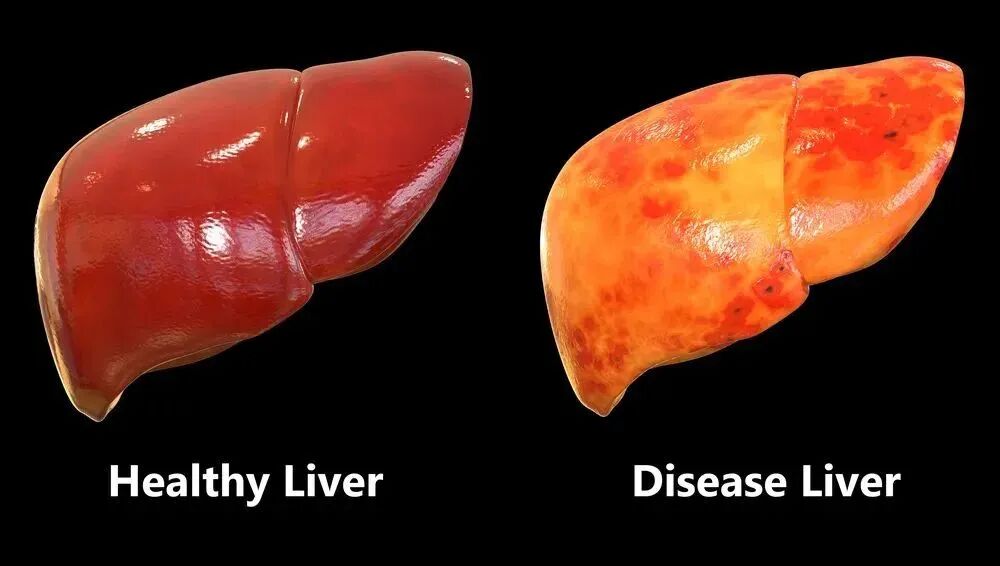 ▲左边为健康肝脏,右边为有肝病的肝脏