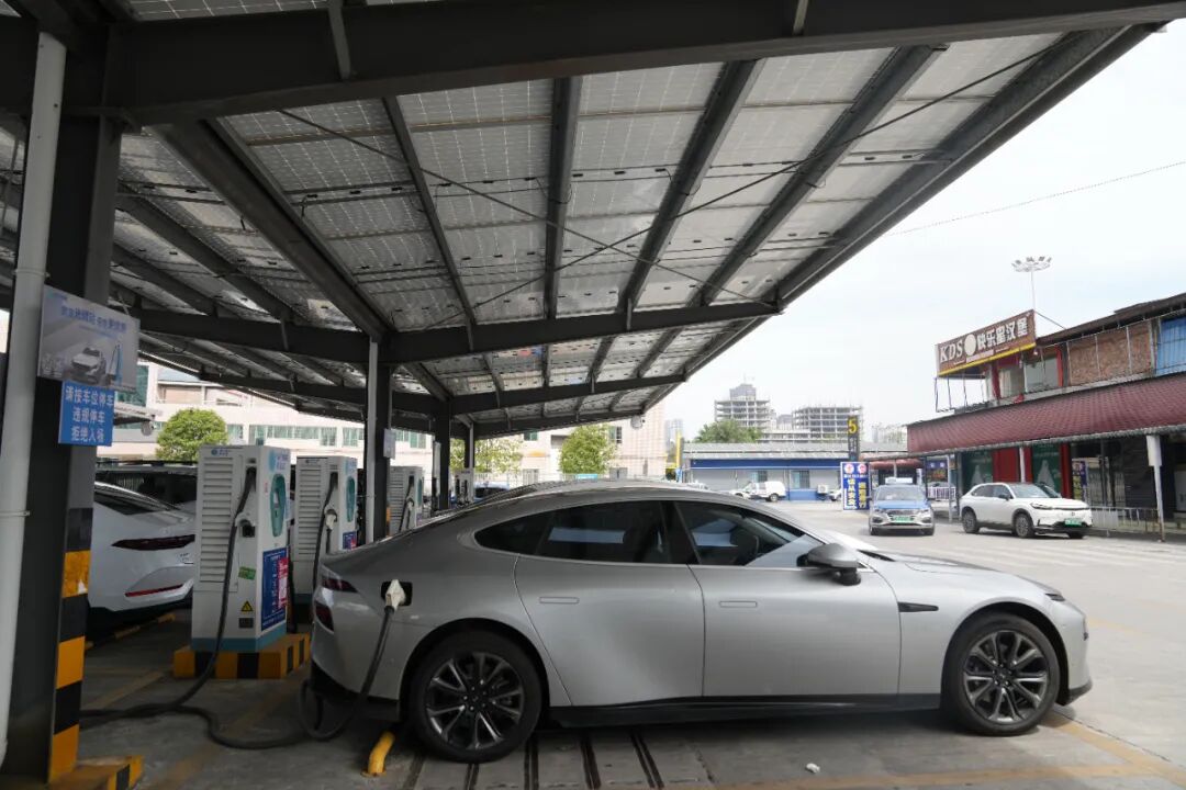 在桂林北站充电站,分为液冷超充区、“光储充”一体区、直流快充区等3个区域。其中,“光储充”一体区是利用雨棚顶部的光伏系统向充电设施供电,多余电量通过储能电站储存,同时在夜间用电低谷期间向储能电站充电,白天高峰时段再通过储能电站向充电设施供电,这就可以大大节约能源成本。这样利用太阳能“自产自销”的充电站在鼎富大厦停车场、桂阳高速雁山收费站等充电站同样得到应用,实现新能源生产与应用的闭环。