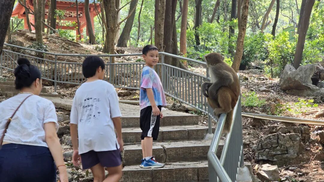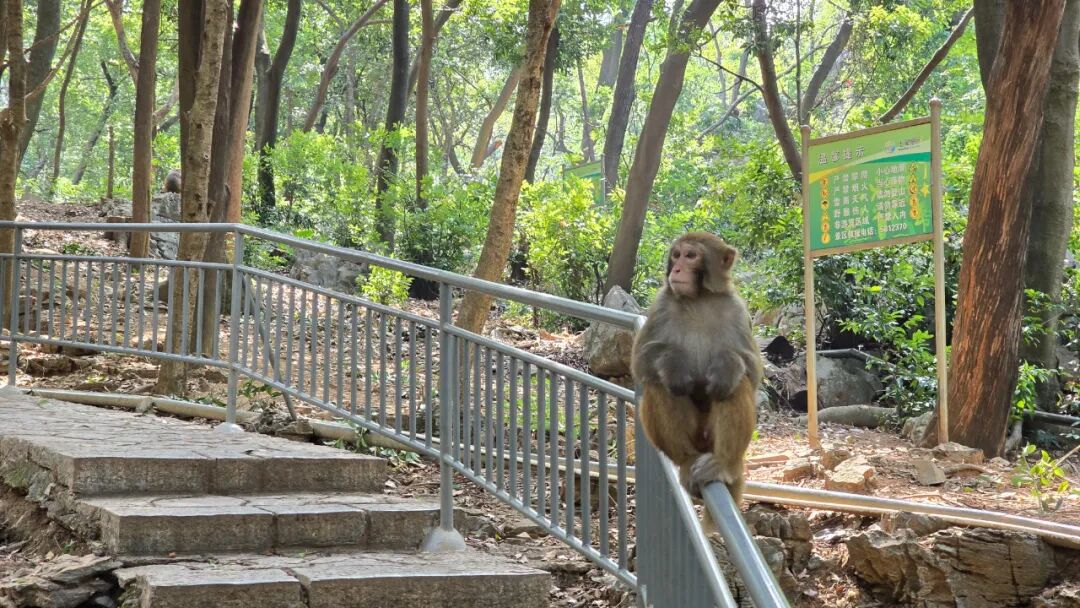 猴子是野生的,性格较为温顺,景区管理部门也会根据天气季节在固定区域对猴群进行投喂,保证猴群生活。但还是建议市民不要挑逗猴并保持安全距离观赏,随身物品也要收好。
