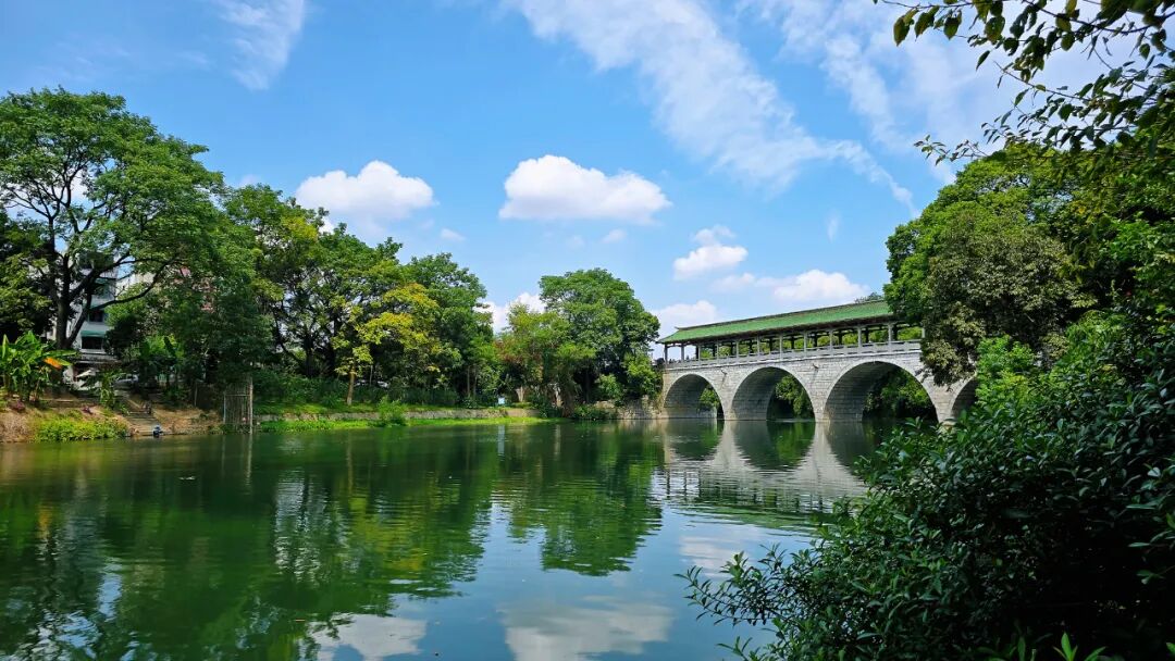 这座始建于明代的石桥是桂林现存最古老的桥梁之一,从廊柱向外拍照,几乎每个框架都能框出一幅山水画。而我们推荐的“冷门”的机位,在桥东南侧的河岸上,从东南的河堤上可以下到岸边,能同时捕捉桥体倒影与周边游的树木、天空,清晨时分雾气缭绕,可拍出水墨画般的意境,夕阳满天时拍摄又是另一番美景。