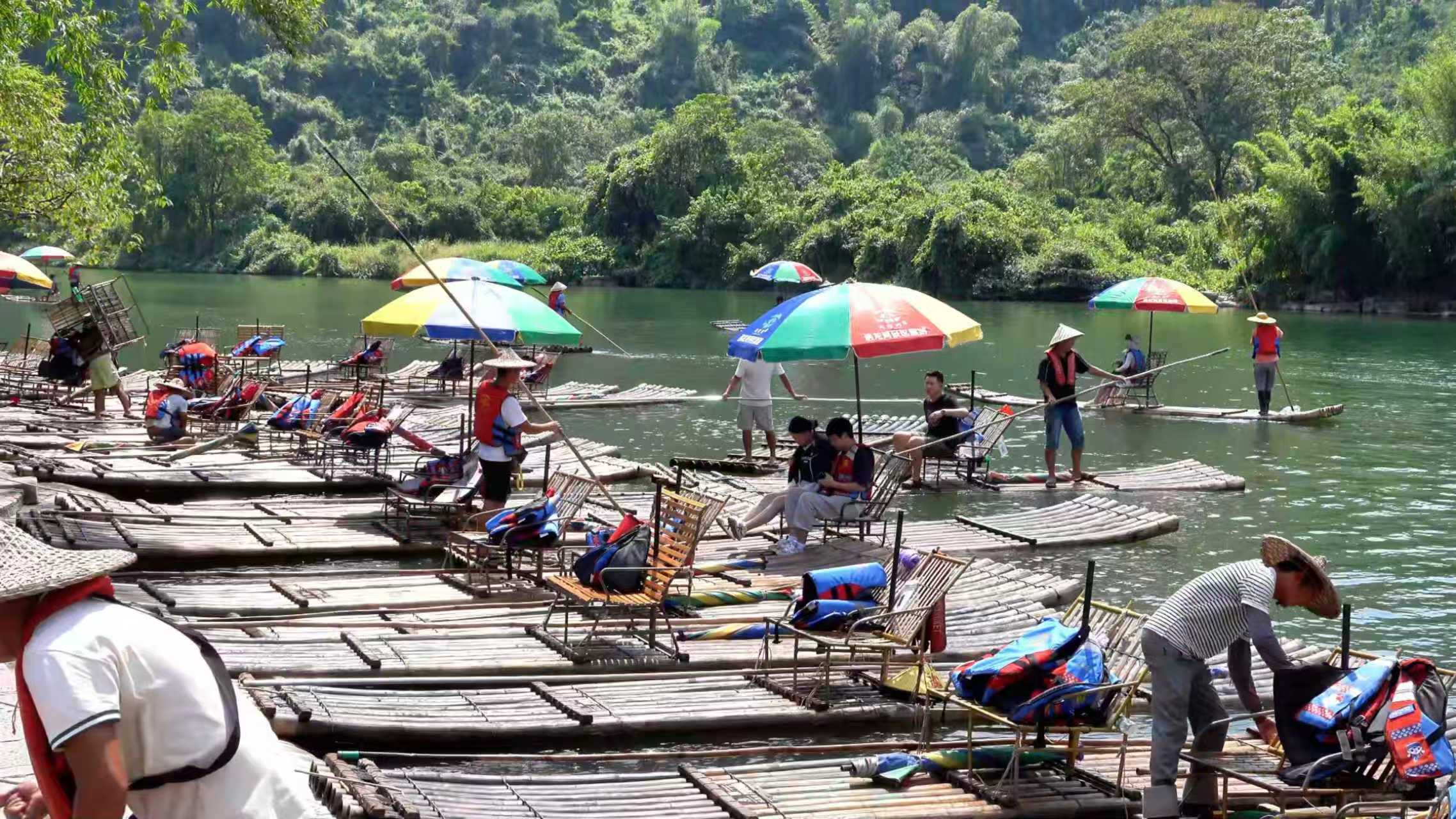 漓江作为阳朔旅游的“金字招牌”,成为游客向往的打卡地。在漓江景区观莲码头,记者看到游客跟随景区工作人员,有序登上竹筏。江面上,竹筏缓缓穿行于青山绿水间,其景宛如一幅流动的山水画卷,游客们或举起相机定格美景,或与同行伙伴轻声分享旅途喜悦,尽情沉醉在“人在画中游”的惬意时光里。