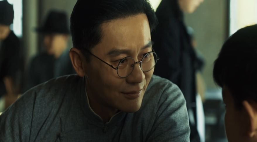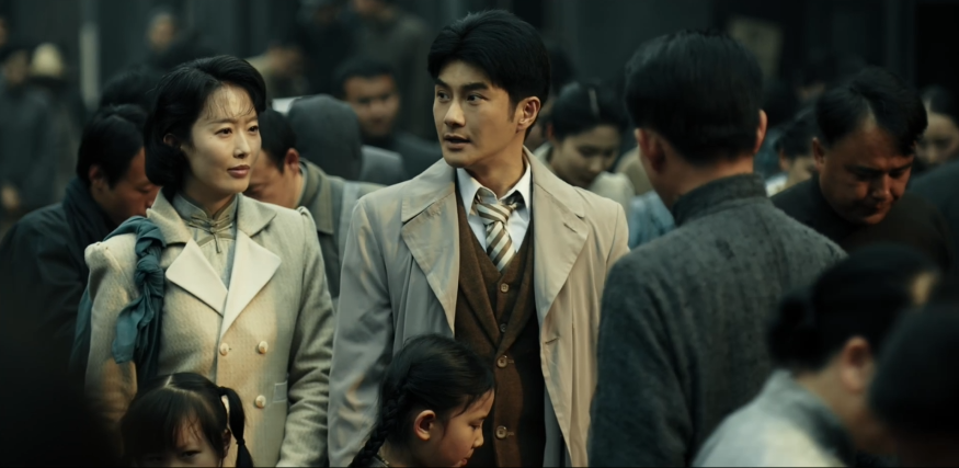 米粉店外,有特务跟踪的身影和刻意飘过的目光。