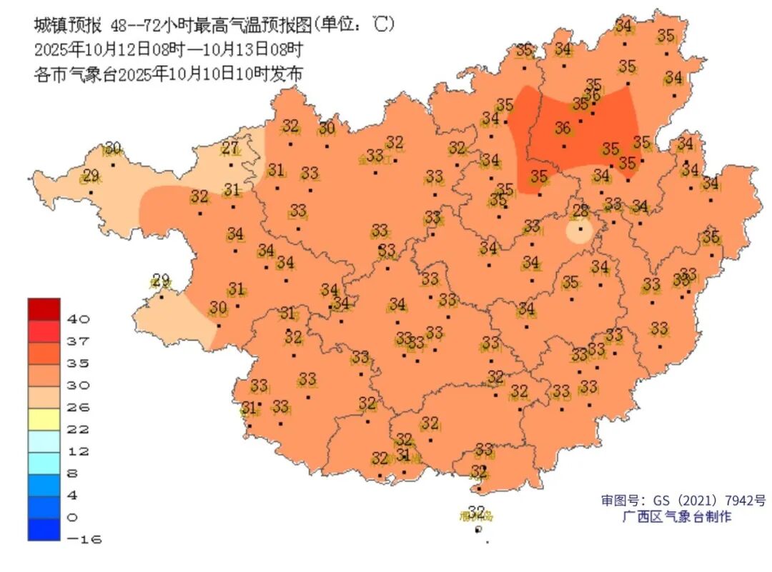 根据广西气象部门检测,10月9日8点至今天(10日)8点,桂林的全州、阳朔、平乐、灌阳、恭城等地位列广西各站最高气温排行榜前列。