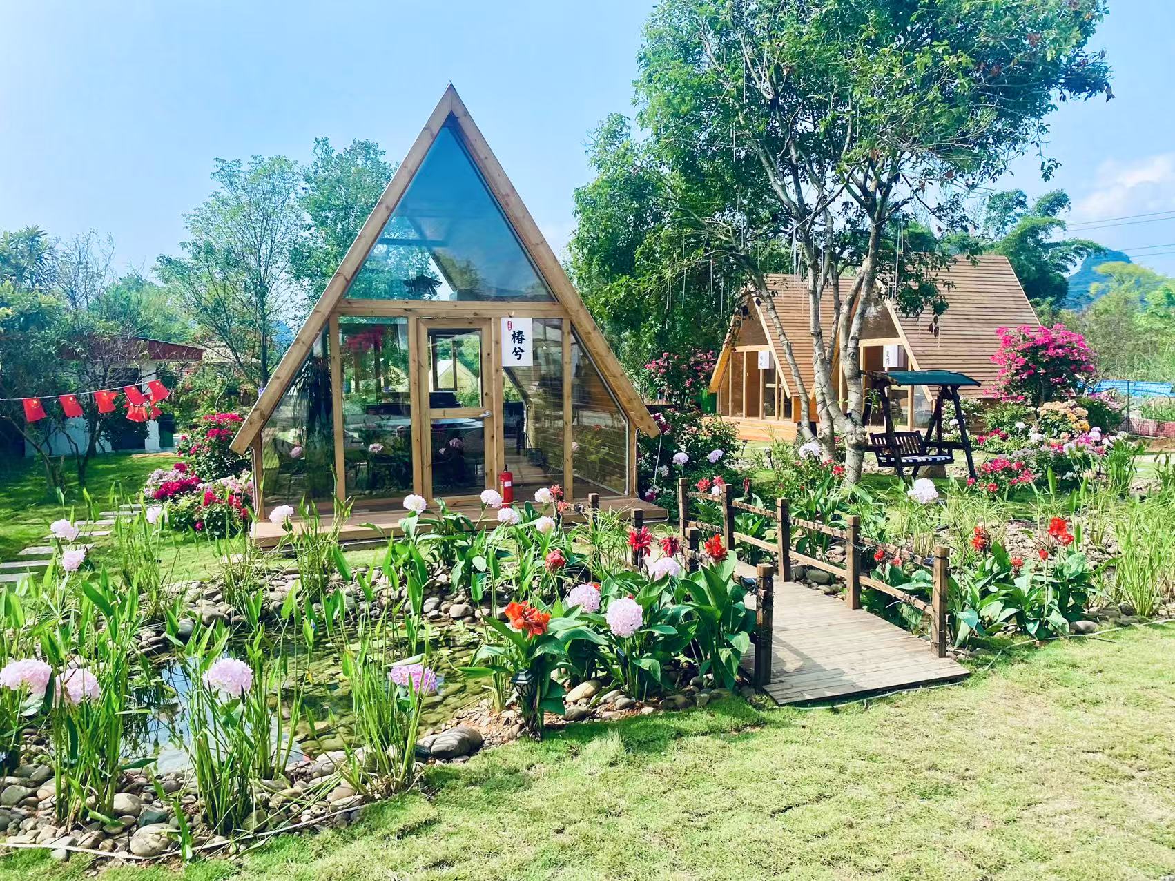 在相隔不远的“方格子小院”里,两位女性主理人正在精心布置着小院的场景。走进小院一片繁花似锦,三角梅在各个角落鲜艳盛开,和木质三角形房屋相得益彰。“我们国庆期间开始试营业,每天都吸引了上百名游客前来游玩和体验特色咖啡,大家都对这里的环境赞不绝口。”方格子小院主理人刘芳表示。