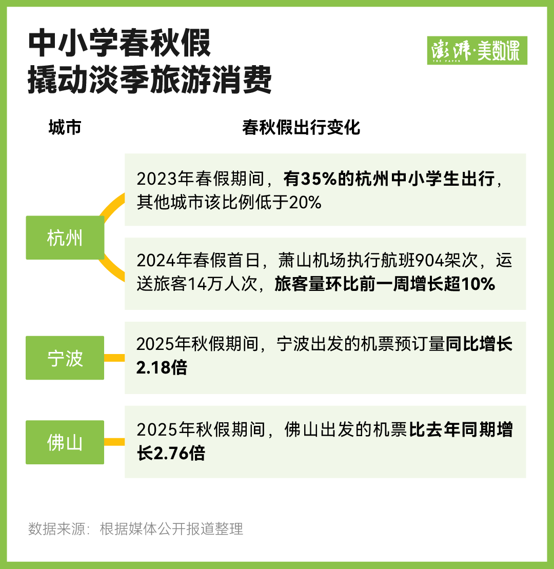 2025年3月中办、国办印发的《提振消费专项行动方案》中,中小学春秋假放在了“保障休息休假权益”章节内,和“严格落实带薪年休假制度”“实现弹性错峰休假”“不得违法延长劳动者工作时间”等并列。