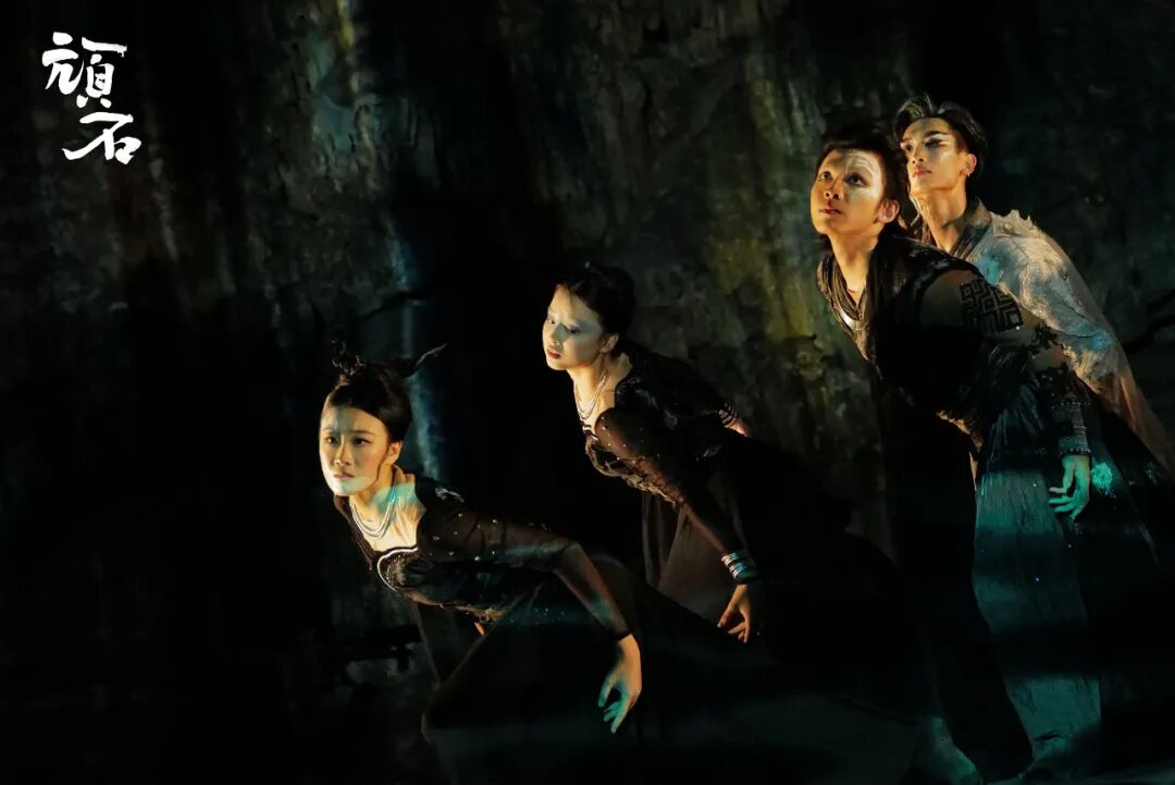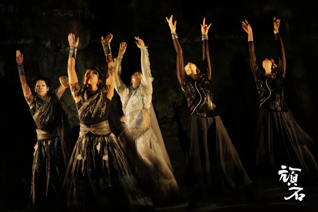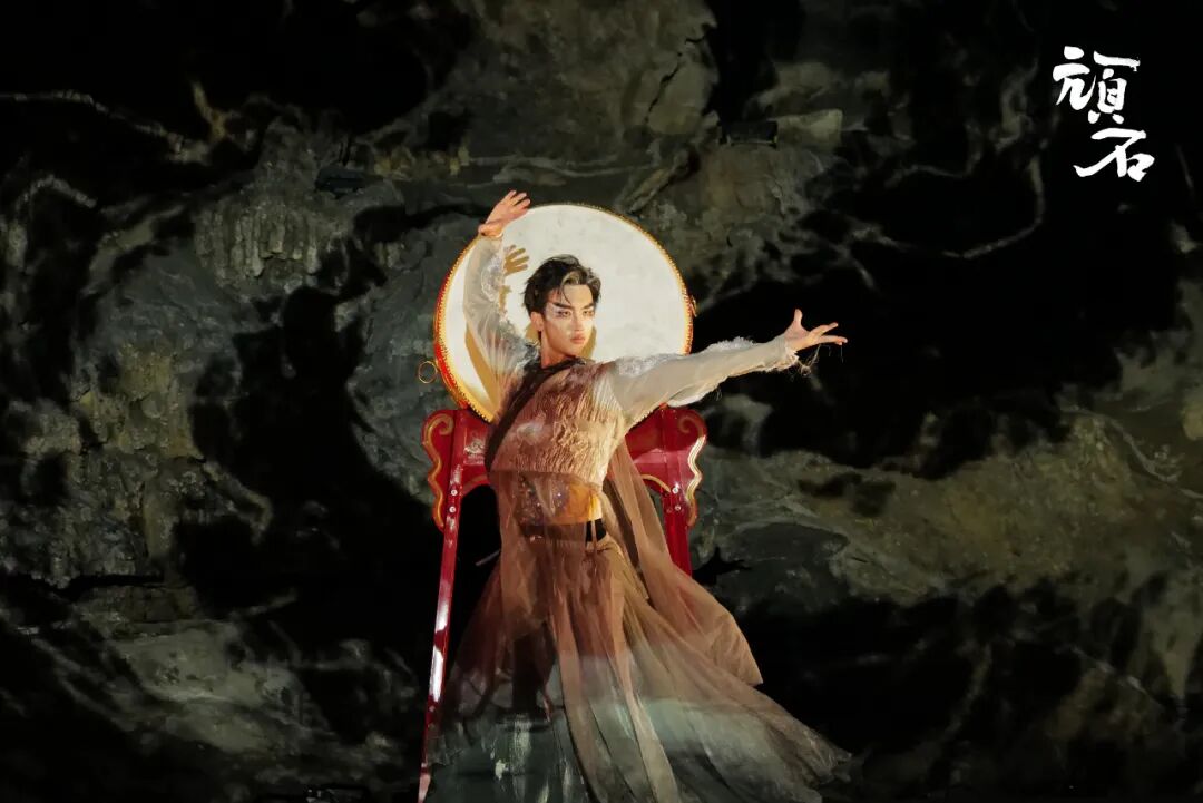在幽深奇特的溶洞环境中,演员们用充满力量的肢体语言,演绎着顽石从被遗弃、迷茫到最终觉醒、完成自我追寻的精神成长史诗。天然的岩壁与多媒体投射的奇幻影像交织,鼓乐的轰鸣在洞腔中回荡,共同营造出一个既古老又充满未来感的艺术世界,使“顽石”的挣扎与抗争更具视觉冲击力和哲学意味。