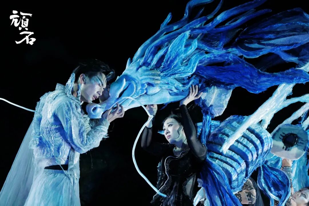 《顽石》一剧取材于中国上古神话“女娲补天”,却将视角聚焦于那块被遗忘、未能参与补天的“顽石”。剧目大胆打破话剧、舞剧、影像剧的边界,有机融合了现代舞、肢体剧场、武术、鼓乐、偶戏与多媒体影像,构建了一个跨越亿万年的多维叙事空间。