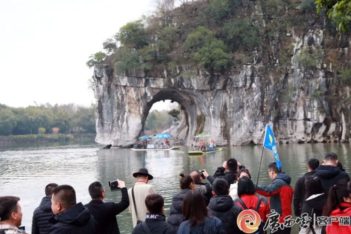 游客在象山景区象鼻山前游玩。李忠波 摄(资料图)